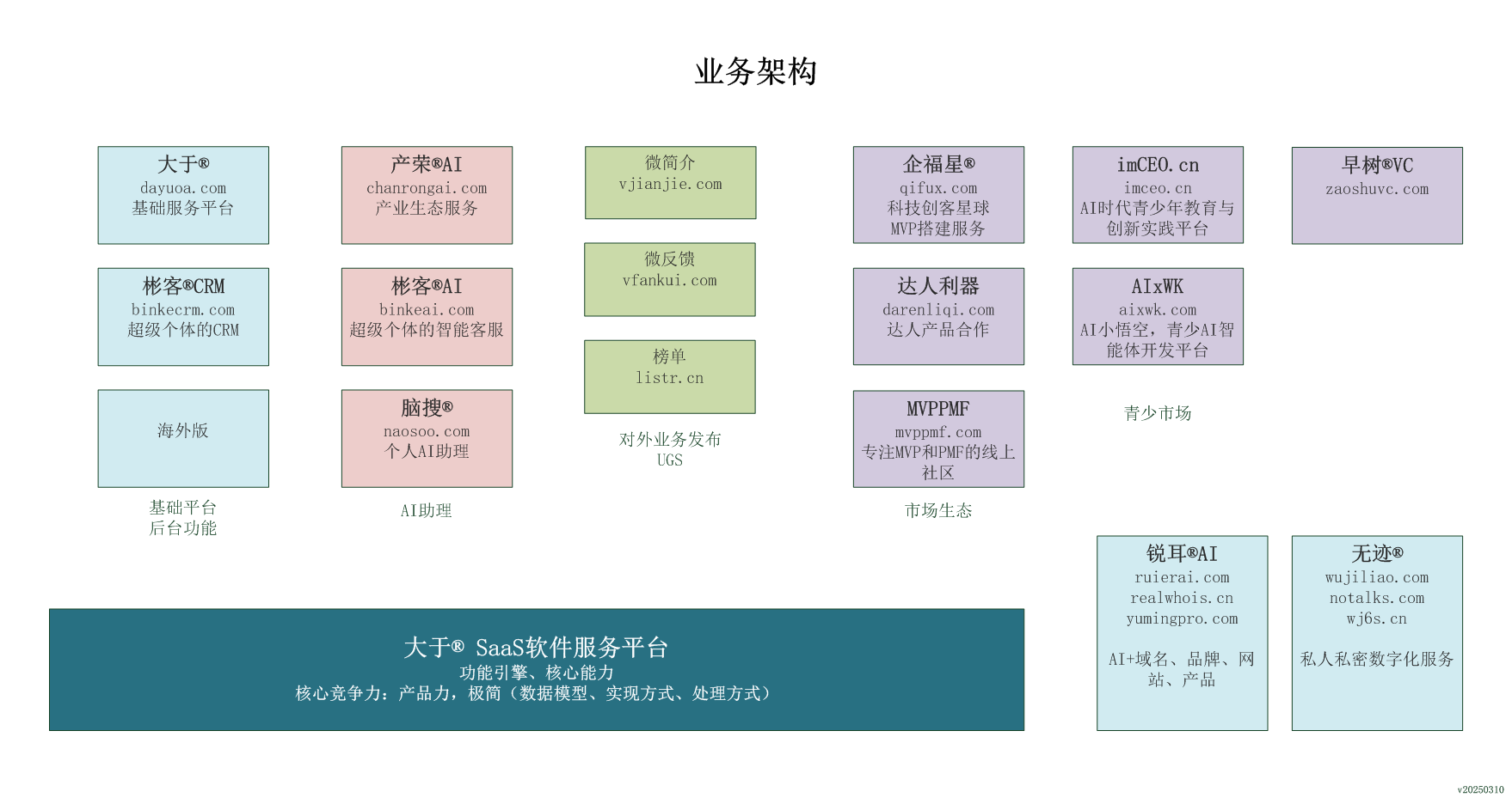 “大于云”是我司核心的SaaS服务平台,也是我司其他垂类产品的基座引擎。它包含100多个功能模块,核心的数据对象模型,并解决了功能与系统之间的基础架构。它可以直接为用户提供服务,也可以在平台基础上派生细分产品。